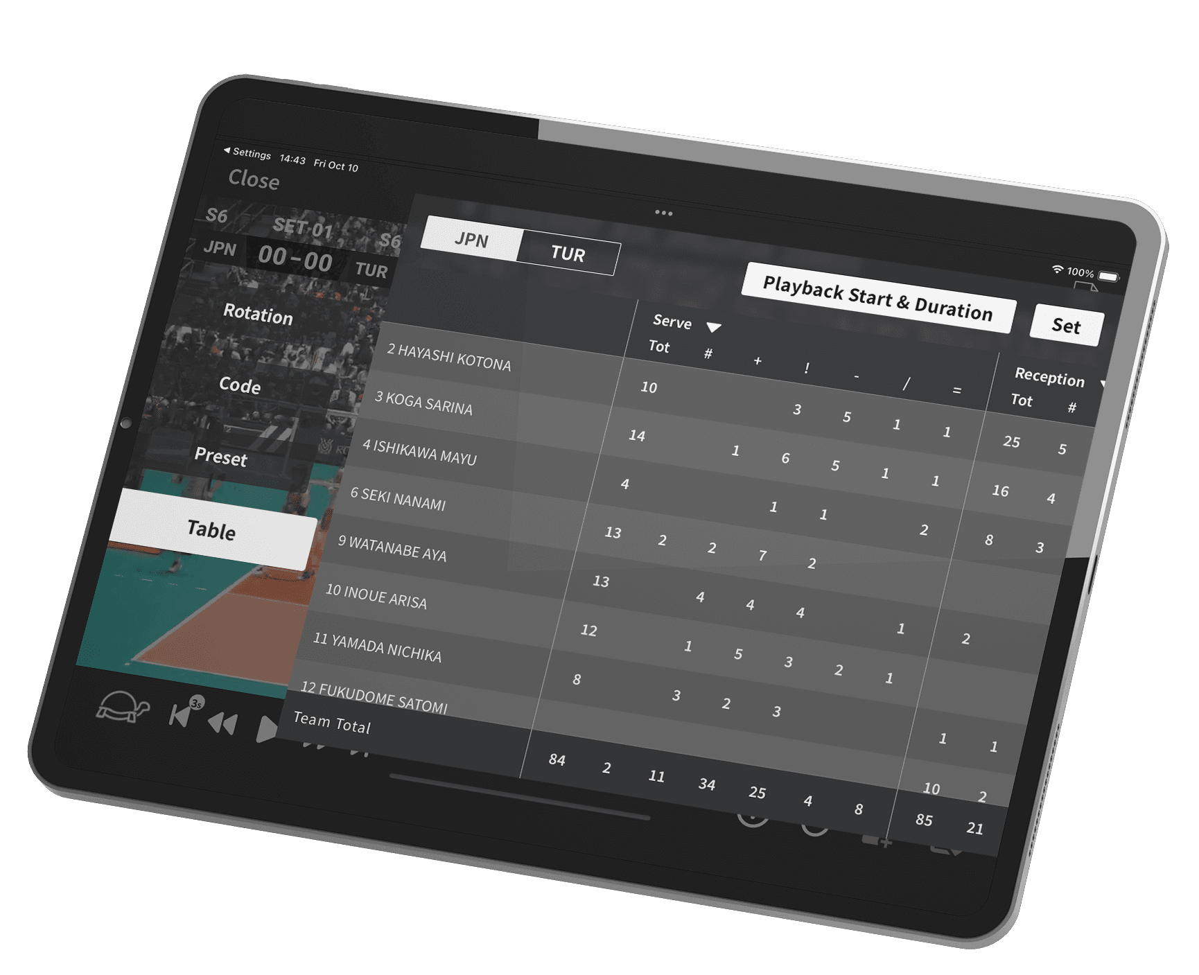 Filter scenes by skill, tempo, or player name to pinpoint exactly the moments you need.